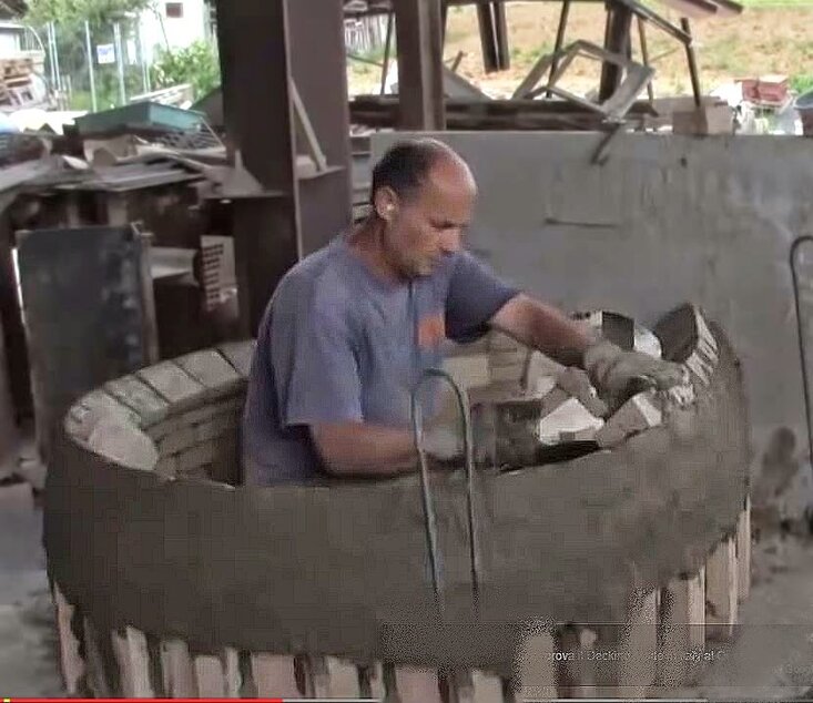 La sequenza della costruzione della cupola del Nuovo Forno Favaglie, ha consentito di prendere atto della facilità con la quale un esperto in forni (Alessandro Bertoli, MN) possa eseguire in tempi brevi la struttura in mattoni refrattari costituenti la cupola da 180 cm. Il segreto del risultato oltre alla esperienza, elemento indispensabile, è dovuta al perfetto taglio di ogni mattone, premontati e numerati nel laboratorio prima del loro trasporto sul cantiere.
